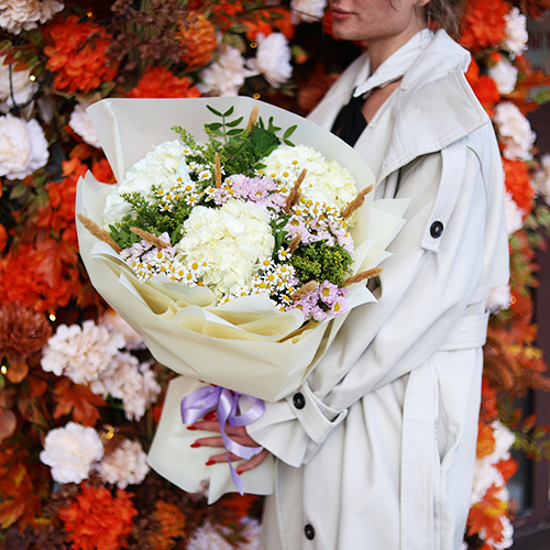 Букет "Zero" из хризантем сантини и гортензий
